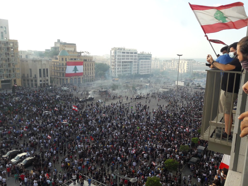 We gather with tens of thousands in Martyr’s square. At first, things remain relatively peaceful. A small group of more organized protesters begin to try to push past the police to gain access to government ministry buildings. Government forces fire tear gas. Most of us watch, chanting, as these two groups push back and forth. Protesters begin to set buildings on fire, buildings that are already mostly destroyed from the August 4 explosion. The quantity of tear gas begins to increase. My confrere and I decide it’s time to move away from the conflict. It has taken an ugly turn. The police fire into the crowd from the opposite direction, right in front of us, and suddenly we are enveloped by a cloud of gas.