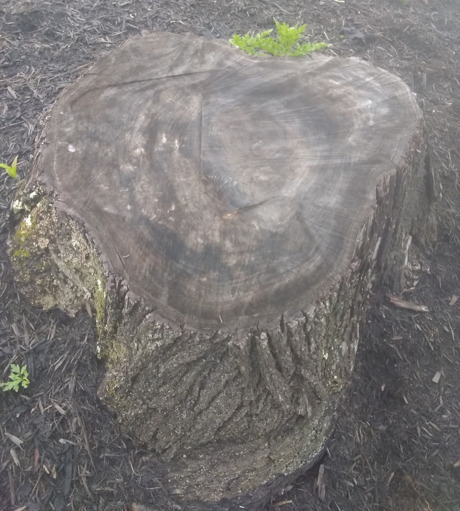 The stump left from our beloved dead tree is heart-shaped? I hadn’t noticed.