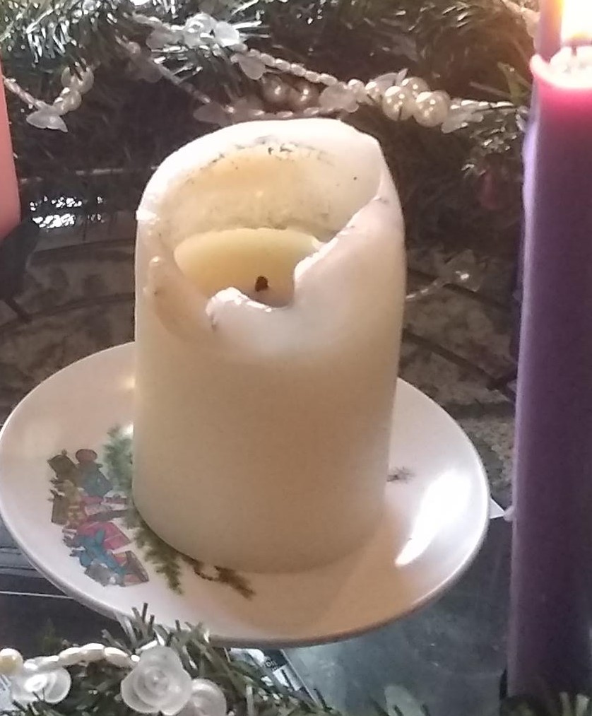I like the fact that my Christmas candle is misshapen. The truth it tells is not immediately obvious. Like the baby in a stable.
