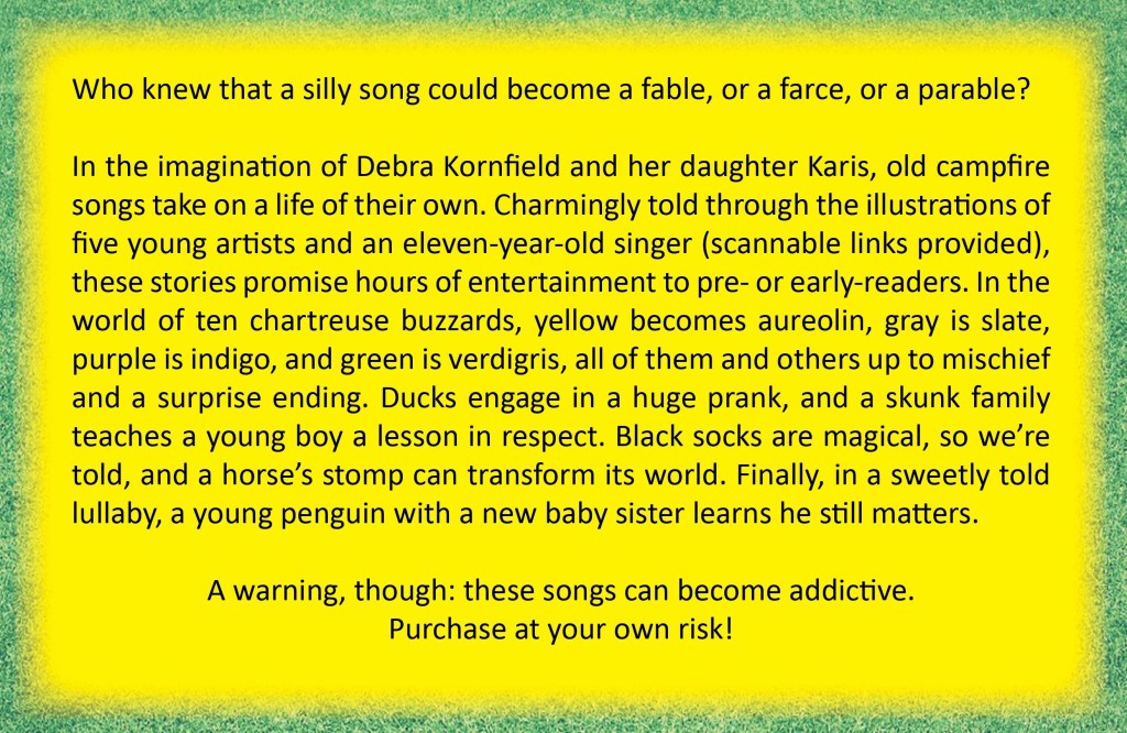 Six stories in one volume for kids 3-8, illustrated by five young artists, with QR links to the songs.