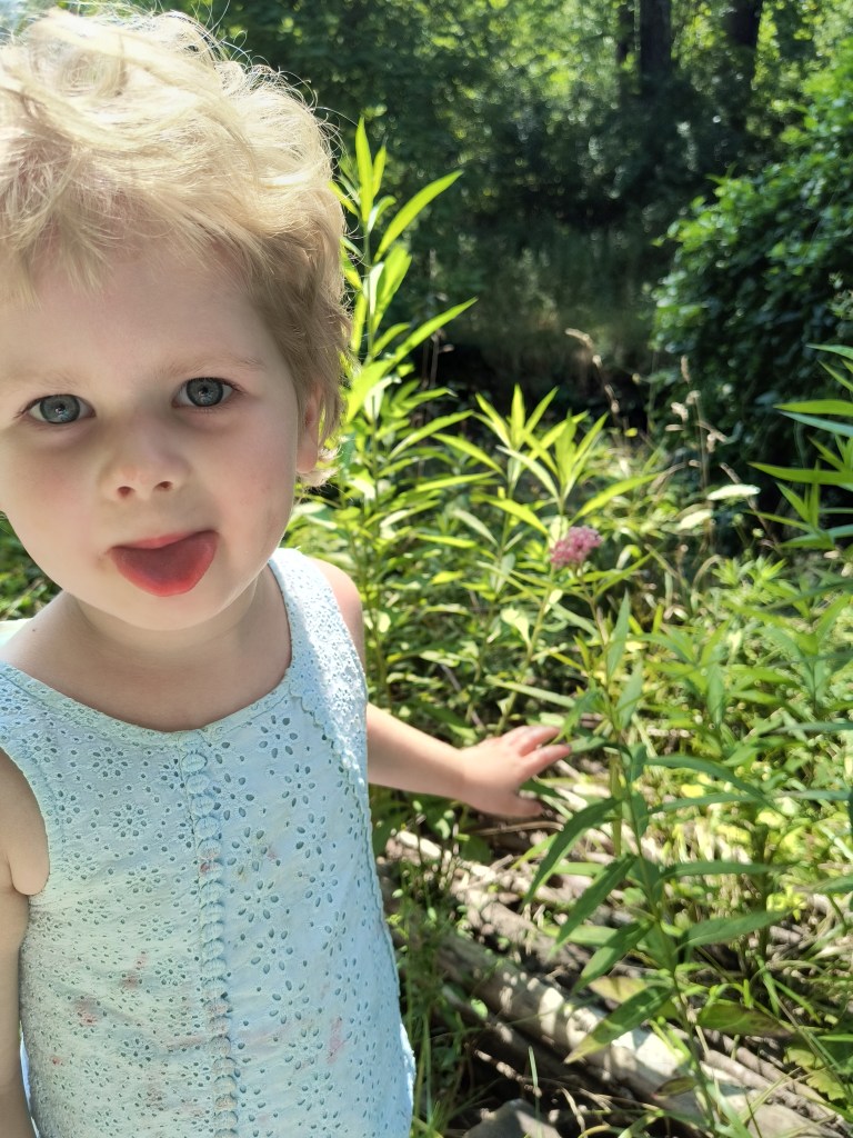 “I saw pink flowers!” yells Lili. “Take a picture of me with them, Grammy.”