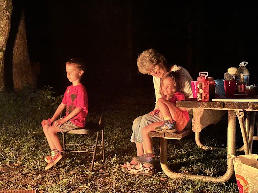 Everyone else took it in stride and ate more watermelon and s’mores made with Brian’s ginormous marshmallows. Caleb, Talita, and Liliana shrieked with laughter as Uncle Dan chased them around our tents. Baby Juliana blessed us with her marvelous smile and her enthusiasm for crawling not just in the grass but in the dirt.