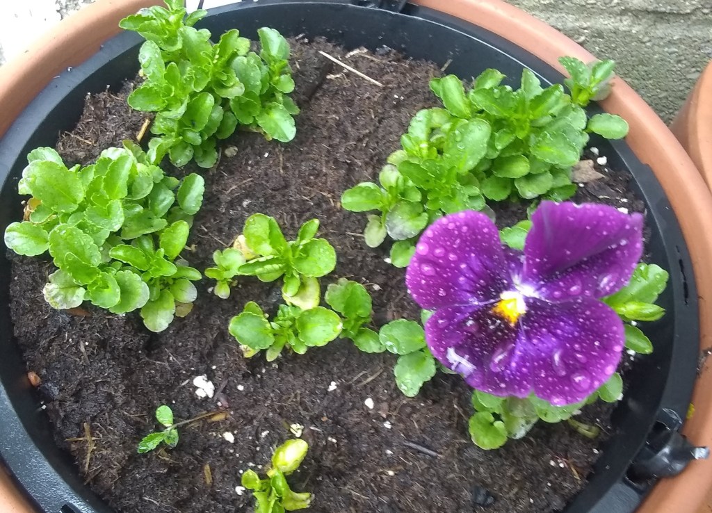 Neighborhood deer ate my pansies down to the dirt. But they’re coming back! I was so excited to see this bloom today.