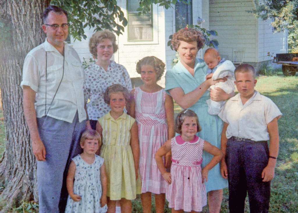 Dad with his family in Independence, KS 1961 (I’m in the yellow dress.)